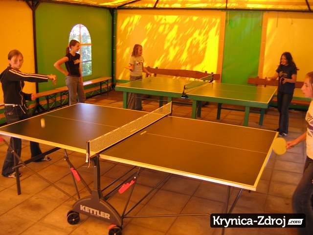 namiot letni ze stołami do ping-ponga i piłkarzykami (oświetlenie),
